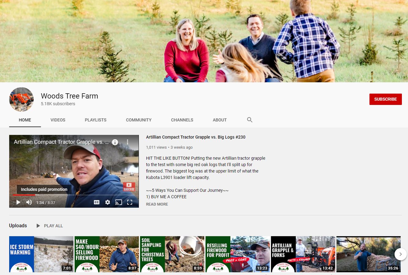 The Woods Tree Farm Youtube Channel covers everything related to Christmas Tree Farming and growing our business from the ground up.
